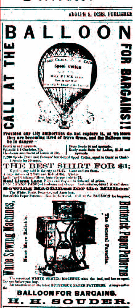 at 211 Market St. in Chattanooga at the sign of the balloon from 1873