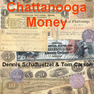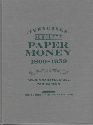 A new book that includes Tennessee obsolete currency, discovery banknotes and scrip as well as all existing published currency is available for sale from the authors Dennis Schafluetzel and Tom Carson. It includes a listing of all 3000+ known paper money issued from Tennessee between 1800 and 1959. It covers all paper money issued by: state authorized banks, private / unauthorized banks, the state, counties, cities, private merchants, companies and railroads.